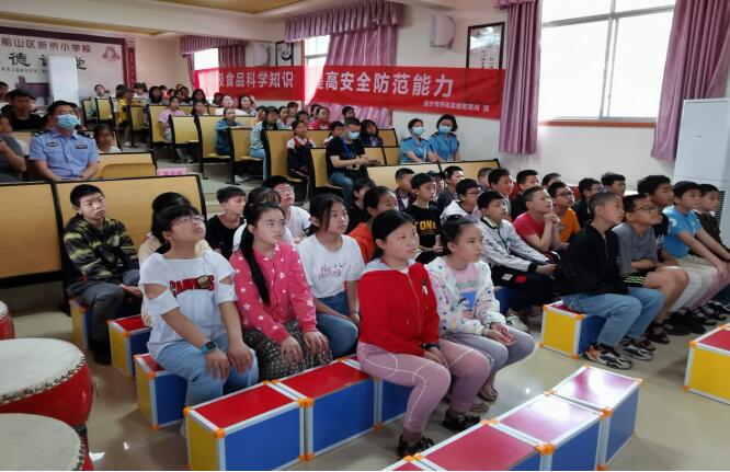 在新桥小学,通过视频播放、PPT播放、老师讲解等形式,向同学们宣传食品安全的知识、如何预防食品安全事故、如何辨别假冒伪劣商品等知识。同学们认真地看、听、记、问,展现了浓烈的兴趣爱好。