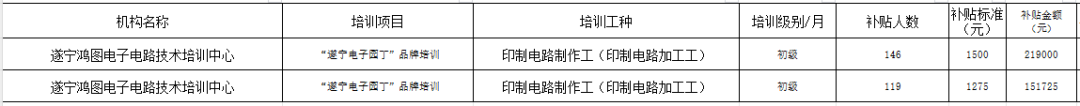 根据人力资源社会保障部办公厅、财政部办公厅《关于做好职业技能提升行动专账资金使用管理工作的通知》要求,现将2023年12月16日至今技能提升行动培训补贴情况予以公示。补贴机构共计1家次,涉及补贴资金370725元,涉及补贴人员265人,如有情况反映,请于1月15日前反馈。 遂宁经济技术开发区劳动保障与民政事务局