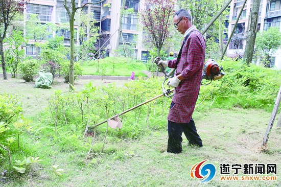 “呲呲呲呲……”6月9日,记者来到位于西山路和平桥头的海琪山水花园小区时看到,原本安静的小区内多了些许修建草坪和树枝的嘈杂声。小区内,园艺工人们正忙得不可开交,他们或拿着剪刀修剪小区内的枝桠;或用剪草机不停地在“小花园”来回走动,将半米多高的杂草修剪整齐;或拿着藤条将小区广场周围的花坛围编上栅栏。