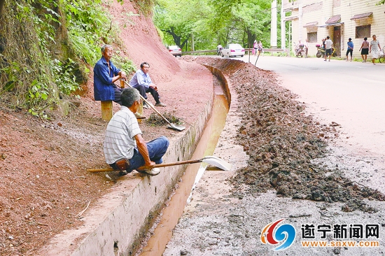 八角亭社区组织人员进行沟渠清淤工作