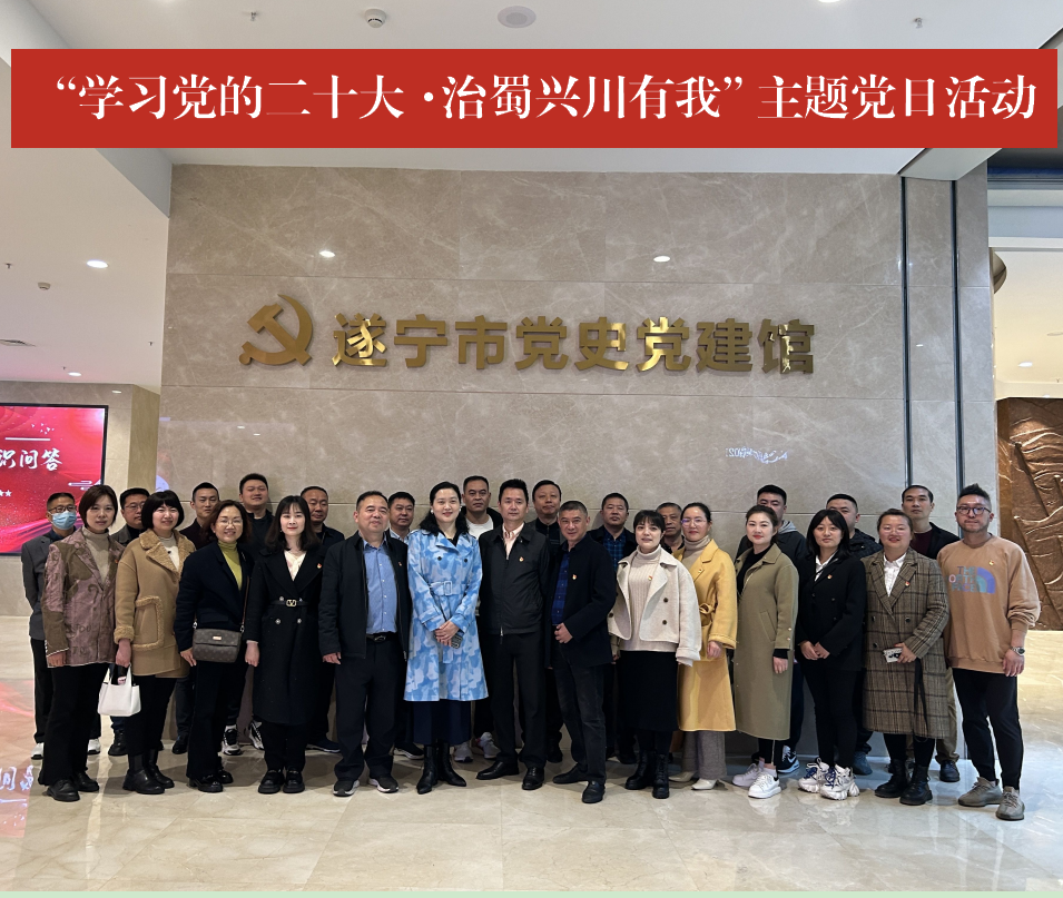 为深入贯彻落实党的二十大精神,日前,嘉禾街道机关党员、各社区党员代表赴遂宁市党史党建馆、遂宁市非物质文化遗产展示馆开展“学习党的二十大·治蜀兴川有我”主题党日活动。