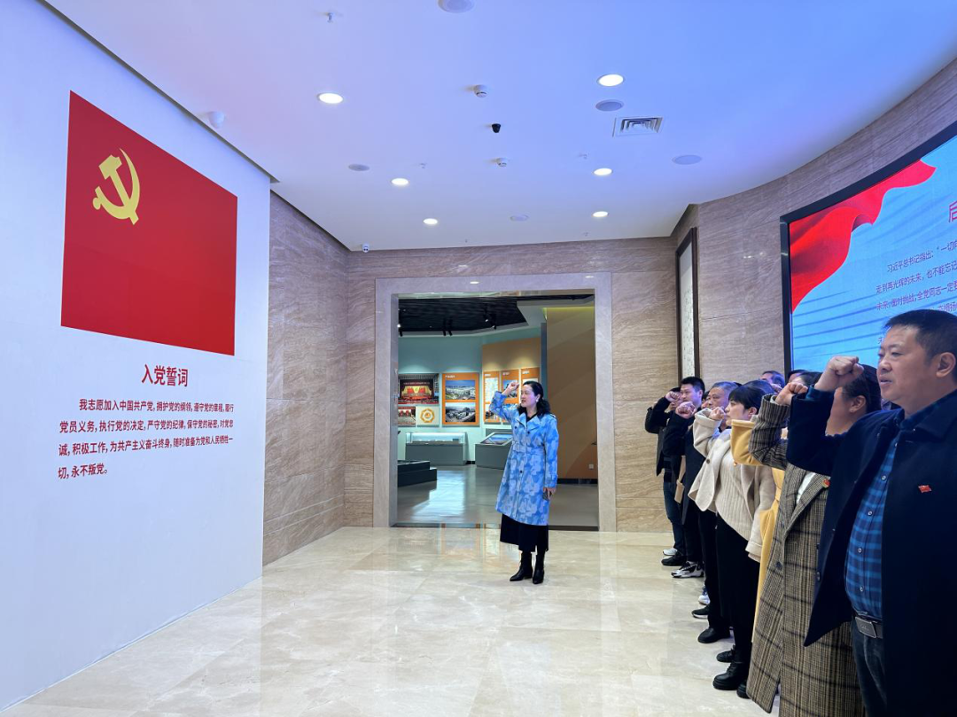 活动中,党员们将自身代入到革命场景之中,重温党的辉煌历史,感受党的光荣历程,领会党的精神文化,部分老党员还现场讲起了自己的艰苦奋斗的故事。最后,党员们怀着激动得心情高高举起右手,在宣誓厅面对庄严的党旗重温入党誓词。