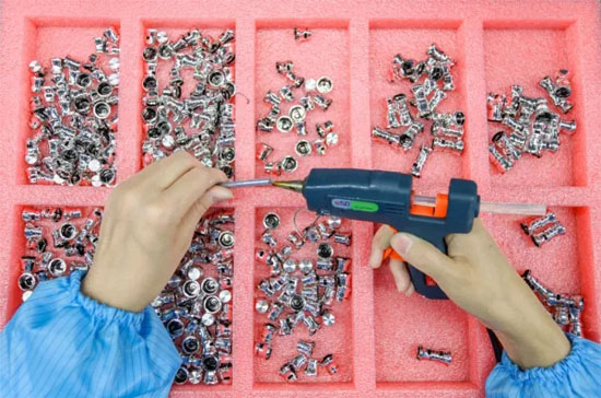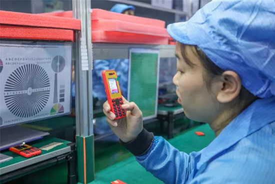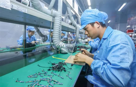 5月8日,遂宁摩天时代科技过渡生产车间生产线上,工人正在加快生产蓝牙耳机与手机。 据悉,该公司是集手机研发、生产、销售、服务为一体的高科技产业园,产品主要出口迪拜、欧洲、东南亚等地。 今年以来,公司出口额已达2.68亿元,预计年出口额可达12亿元。(遂报全媒体记者 刘昌松)