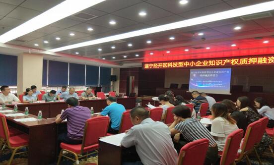 近日,为全面落实市科知局关于知识产权质押融资工作相关要求及相关会议精神,充分发挥专利权融资功能,拓宽企业融资渠道,支持高新技术产业发展。经开区高度重视,广泛宣传,精心组织38家科技型中小企业,4家授信银行与人保财险在我区创新创业孵化中心召开“遂宁经开区科技型中小企业知识产权质押融资推进会”。 会上由经贸局相关业务负责同志向各企业讲解《遂宁市科技型中小微企业专利权质押融资试点方案》、《遂宁市专利权质押贷款管理办法(试行)》文件内容;四家银行与人保财险分别向企业讲解专利权质押融资申请流程、审核流程及注意事项,提升专利权质押贷款便捷服务效率;会议最后以企业提问,政府和银行做答、填写知识产权质押融资调查表的形式,不仅让企业更加了解专利权质押融资带来的益处、清楚相关的申请办理流程,也直接消除了企业的疑虑,同时,通过交流和调查问卷也让各银行机构了解企业的融资需求,便于专利权质押融资的办理工作开展。(遂宁经济技术开发区经济贸易局)