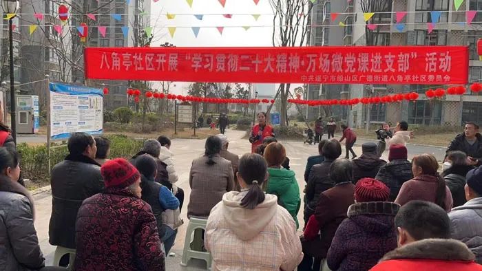 为深入学习贯彻落实党的二十大精神,遂宁经开区广德街道八角亭社区开展“庆元宵·听党课—学习贯彻党的二十大精神·万场微党课进小区”活动,将党的二十大精神传递到千家万户。