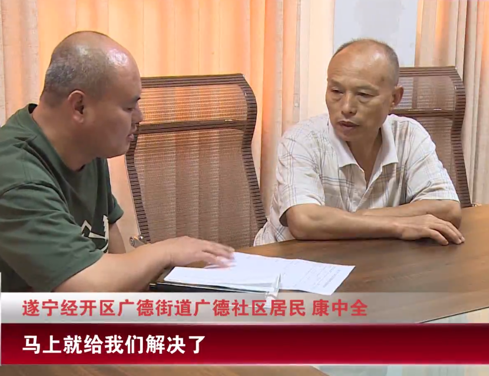 近日,在遂宁经开区广德街道“基层服务哨所”内,居民康中全正在反映小区路灯部分损坏、灯光昏暗,居民夜间出行不便的问题。广德街道“基层服务哨所”网格长程青松现场受理、答疑解惑,消除康中全心中的疑虑。“虽然说是小事,但处理得很及时,办事效率也高。”康中全说。
