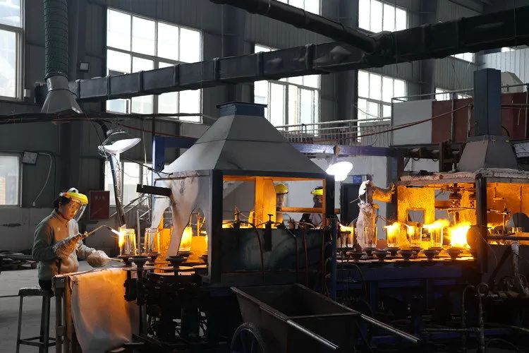“车间一共有六条生产线,两条生产工艺玻璃,两条生产酒瓶等玻璃瓶,两条生产小家电玻璃。”姚云健介绍,公司有多台生产、压制成型等设备,300多套模具,能充分满足客户所需。