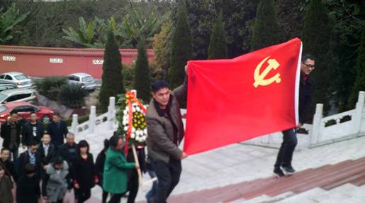 上午10点,学校全体党员教师聚集在遂宁市烈士陵园,校党支部书记杨洪春带领全体党员沿着台阶缓步走向烈士纪念碑。在巍然屹立的烈士纪念碑前,大家肃穆而立,向革命先烈敬献花圈,鞠躬默哀,表达崇高的敬意和深切的怀念。在鲜红的党旗下,全体党员教师庄严地举起右手,重温入党誓词,立志要牢记党的宗旨,坚定党的信念,用自己的实际行动践行入党誓词。