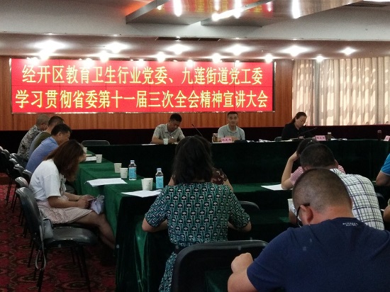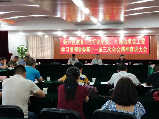 会议由社会事业局局长张文莉主持,九莲街道党工委、社区党支部和教育卫生行业党委、社会事业局、学校、医院、民办幼儿园党支部共60余人参加了本次宣讲会。