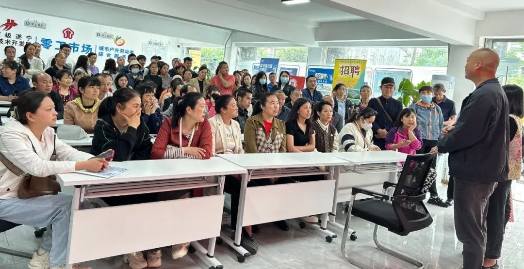零工市场迅速行动,打破传统宣传模式,通过短视频平台精准推送招聘信息,结合社区微信群、线下公告栏多渠道发力,仅用半天时间,便在4月25日上午10:30,吸引了100余名求职者来到现场。现场人头攒动,求职者们热情高涨,积极与企业沟通岗位需求,场面热烈而有序。