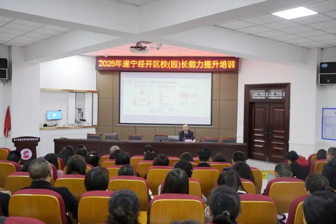 11月27日,遂宁经开区校(园)长能力提升专题培训在遂宁高级实验学校外国语学校学术报告厅正式开班。全区70名校(园)长将通过为期3天的系统学习,为全面提升区域校园治理水平充电赋能。
