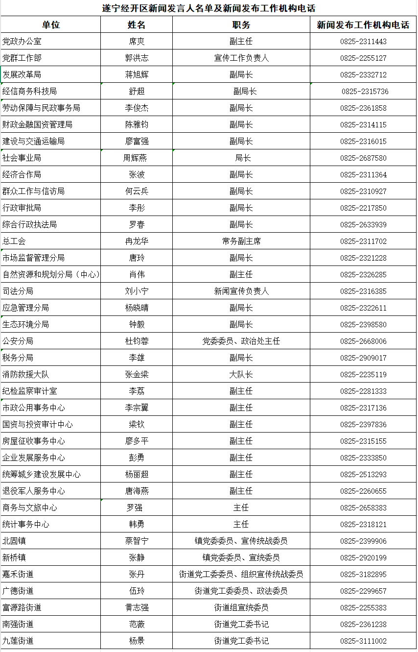遂宁经开区新闻发言人名单及新闻发布工作机构电话