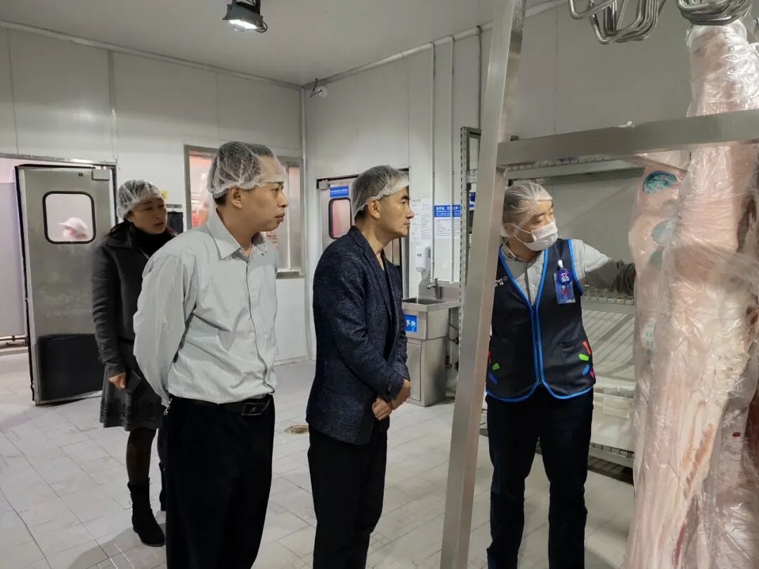 在南大食品有限公司,调研组实地考察了公司冷链食品物流建设相关情况,并且听取相关负责人汇报,详细了解了公司生产经营发展历程和冷链食品来源质量控制情况。