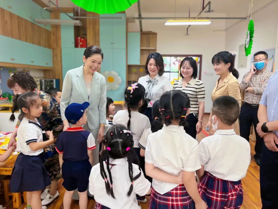 向莉一行先后来到遂宁高级实验学校外国语学校小学部、北固幼儿园,实地参观了师生书画和学生手工作品展,观看了学生们的精彩表演,与师生亲切交流,并代表区党工委、区管委会向全区少年儿童致以节日的问候,向同学们送上节日礼物,勉励大家要树立远大理想,锤炼高尚品格,练就强健体魄,认真学习、阳光生活、健康成长,关心同学、尊敬师长、感恩父母,不断地充实自己、提升自己,打好人生底色。