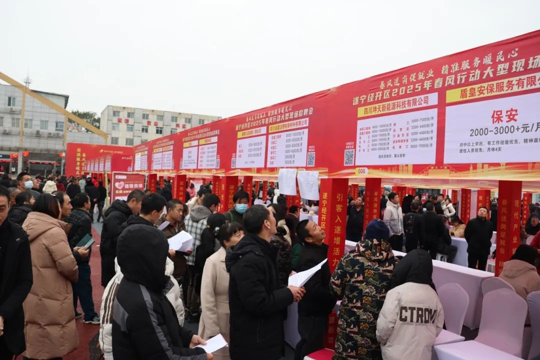 2月5日,遂宁经开区在遂宁火车站站前广场举行2025年“春风行动”大型现场招聘会,活动以“春风送岗促就业·精准服务促发展”为主题,近200家企业参加,提供了8000余个岗位,吸引了众多求职者前来咨询。