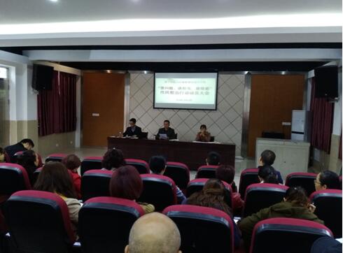 杨洪春校长做了动员讲话,他希望学校全体教职员工要提高认识,加强学习。要把思想和行动统一到中央决定和省市区决策部署上来,认真贯彻落实习近平总书记关于全面从严治党重要要求和市区“查问题、讲担当、提效能”作风整治行动相关会议精神,切实增强政治自觉、思想自觉、行动自觉。一要高度重视,不碰红线,不成为反面典型;二要认真对照标准,端正工作作风,切实自查自纠;三要安心做好本职工作,努力提升教学质量,做学生的良师益友。最后,他勉励大家一定要以本次次作风大整顿活动为契机,严肃纪律、转变作风、提升能力,进一步树立大局意识、提升纪律意识、强化责任意识、增强服务意识、全面提高教育教学质量,为经开区教育事业的发展倾注持久活力。