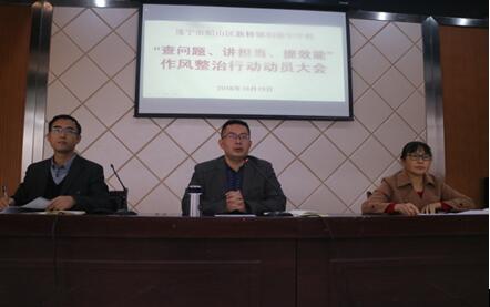 为认真贯彻落实市、区“查问题、讲担当、提效能”作风整治行动相关会议精神,解决学校管理和教师队伍中存在的突出问题,加强队伍建设,提升育人质量。10月19日,经开区新桥中学组织召开了教职工作风整治动员大会,彭艳副校长主持会议。