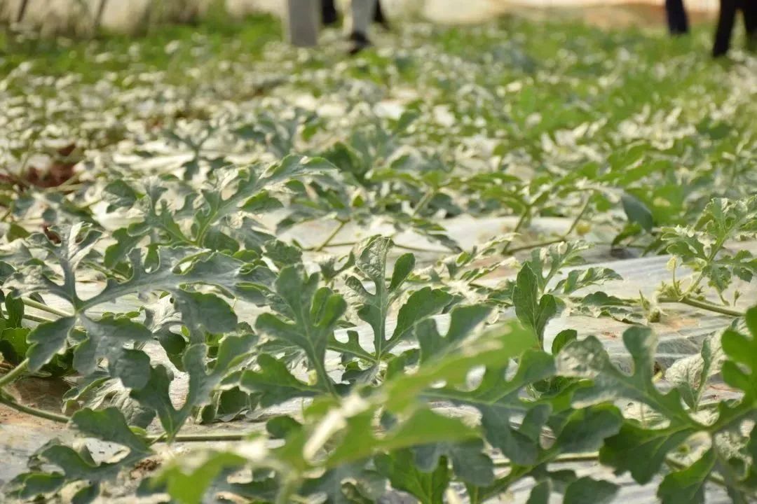 棚内,绿油油的藤蔓笔直地铺满每个角落。“5月底就可以上市了,我们一年可以收三茬,可以一直持续到9月底,随后就接着种海椒。”张锐告诉记者,他在村上承包了40余亩土地进行西瓜和蔬菜种植。