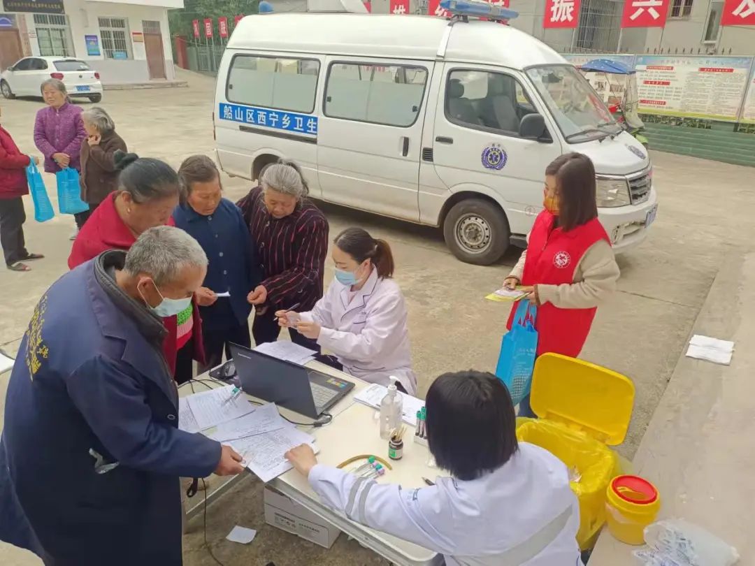 此时,西宁卫生院的2名医生带着体检设备,早早在此等候。身着红马甲的志愿者一边发放宣传单,一边协助医护人员进行检查。活动现场,医护人员为村民测量血压、检查血常规、血糖等,耐心解答村民咨询的各类问题。同时,志愿者们向老年人普及健康保健知识,发放宣传资料100余份,进一步增强老年人身体保健意识。