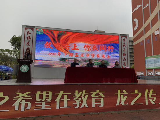 11月15日上午8点,玉龙中学操场上红旗飘扬,主席台上“教育路上,你我同行”八个大字闪亮而夺目,一根根小板凳整齐地排列着,一个个班牌醒目地耸立着,一位位家长陆续赶来,这一切都是为迎接一次重大的盛会——全校学生家长会。