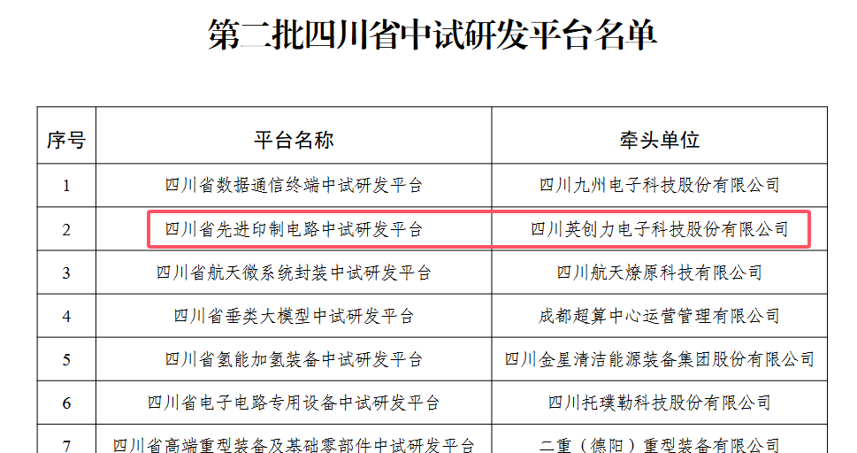近日,四川省科学技术厅正式公布第二批省级中试研发平台名单,遂宁经开区企业四川英创力电子科技股份有限公司凭借在高精密印制电路板领域的技术攻坚与产业化闭环能力,成功获批“四川省先进印制电路中试研发平台”。