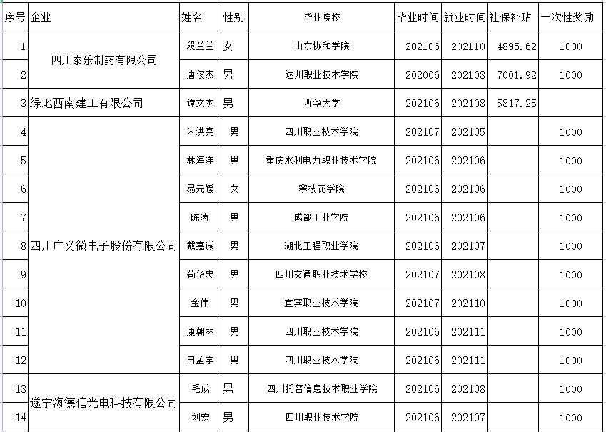 附件:遂宁经开区企业吸纳重点群体就业花名册
