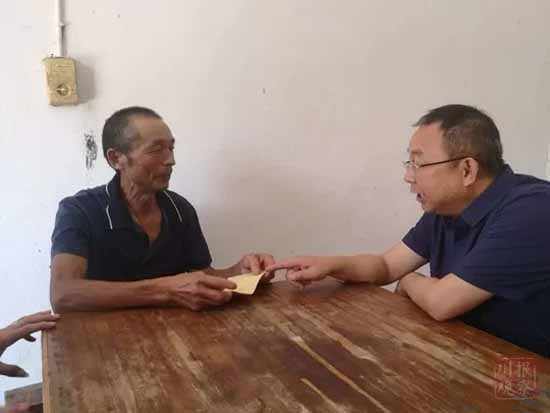 11点30分,李和平一行来到联升村11社的李贵才家中,李贵才刚从工地做小工回来。因儿子患病无劳动能力需要吃药维持,有2个小孩在读书,全家仅靠他们夫妻二人种地和在工地打小工维持。今年66岁的李贵才,是一位有着43年党龄的老党员,是联升村的建档立卡贫困户,李和平多次来到他的家中进行帮扶指导。