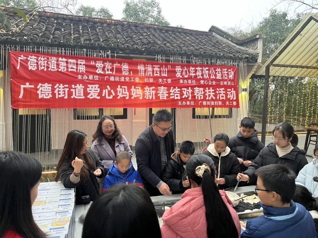 岁末将至,爱暖人间。1月23日,遂宁经开区广德街道举办第四届“爱在广德 情满西山”爱心年夜饭公益活动,邀请辖区12位“爱心妈妈”及其结对帮扶困境儿童共度温馨时刻,共享丰盛的年夜饭。