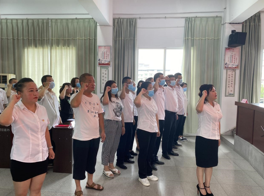 6月30日,在富源路街道四楼会议室,60余名参会人员齐声高唱国歌,在激昂的旋律中感悟历史的嘹亮回响。随后,由街道党工委书记谭滢领誓,9名预备党员进行入党宣誓、50余名正式党员也重温了入党誓词。八十个字的入党誓词虽然简短,却深刻诠释了每一名党员对党和人民的庄重承诺,每一次宣誓都意味着一场精神的洗礼、责任的提醒和警钟的长鸣。