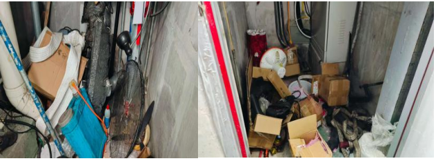 隐患一:电气竖井内堆放大量可燃物(24栋)。