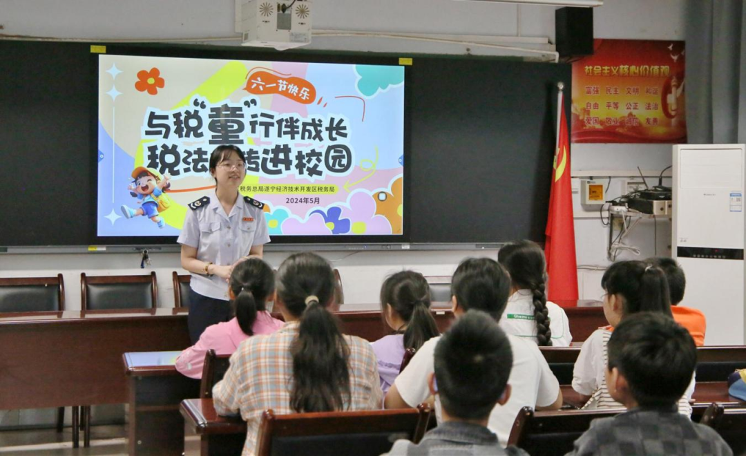 日前,国家税务总局遂宁经济技术开发区税务局组织税务干部走进遂宁经济技术开发区凤台小学,开展税法宣传进校园活动,种下“税法”种子,呵护童心茁壮成长。