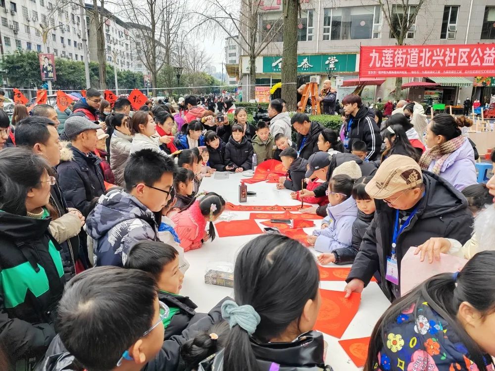 1月26日,由九莲街道北兴社区主办的迎新春公益慈善艺术体验活动在蜀秀东街热闹举行。活动以“执笔送福绘春联 翰墨飘香迎新年”为主题,通过书法美术名家现场展示,孩子们体验书画创作,感受传统艺术的魅力。