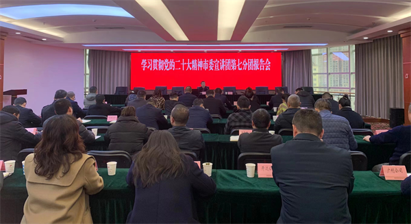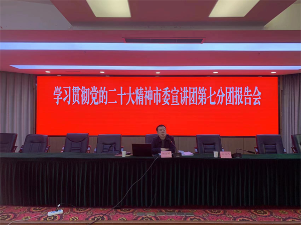 2月15日,市委宣讲团第七分团副团长,市委副秘书长、政研室主任何云峰走进遂宁经开区开展党的二十大精神宣讲,在家委领导及委属各部门、各镇(街道)、国有平台公司主要负责人参加宣讲会。图片