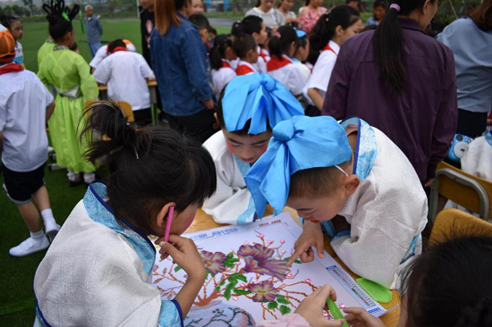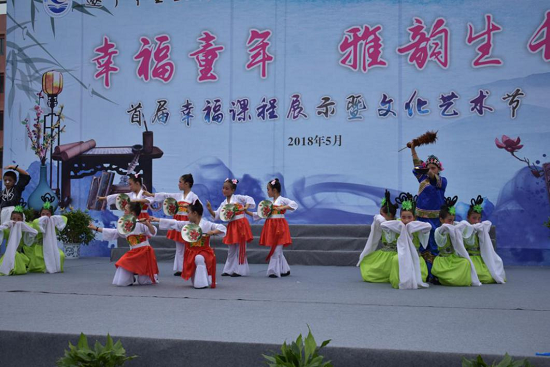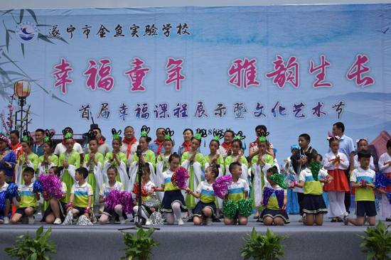 5月31日,遂宁市金鱼实验学校隆重举行了以“幸福童年,雅韵生长”为主题的首届幸福课程展示暨文化艺术节,欢庆国际六•一儿童节。校园里鲜花与笑脸相映,歌声与笑声齐飞,处处洋溢着庆祝“六一”儿童节的欢快气氛。经济技术开发区社会事业局张婷副局长一行,各社区两委领导、辖区企业领导来到学校,和孩子们相聚一堂,共庆“六一”儿童节,并为他们带来了礼物。 庆祝活动分为两个部分,首先学校精心布置并展出了学校的特色幸福课程。学校本着“顺其天性、启其智性、扬启个性”的生长教育理念,开设幸福课程,让孩子们“自然生长”。这种新颖的现场展示得到了到会的领导和家长的肯定:学校的育人主张不是挂在墙上、说在嘴上的,而是实实在在落在了每个孩子的身上了。 学校领导宋红梅校长致辞,她在会上表示学校以“内涵发展 打造优质教育,人文立校 追求幸福生活”为办学目标,确立以“崇尚自然•雅韵生长”的育人主张,突出“优秀传统文化”为特色校园文化,实施“民主和谐、依法治校”的科学管理模式。随后社会事业局张局长作了重要讲话,首先肯定了学校在宋校长的带领下在过去一年作出的成绩,并表达了对少年儿童的良好祝愿和对下一代的美好希望,同时对学校今后的办学提出了新的、更高的要求。 学校副校长漆杰宣读“优秀辅导员”“幸福家庭”“雅行少年”表彰决定,张局长和各企业领导代表还共同为获得各级各类表彰的家长和孩子们颁发了奖状。 在文艺汇演中,来自文化界的艺术家们和孩子们共同为大家带来一场盛宴。活动中,孩子们通过合唱、舞蹈、经典诵读、才艺展示等形式展现了少年儿童在阳光下健康成长的精神风貌,充分表达了对幸福美好生活的礼赞。精彩的表演得到现场领导和师生的阵阵掌声,其中四年级表演的小品更是让现场的领导和同学们流下了感动的泪水。而全国月季花专家、画家、陶瓷艺术家陈于化及市书法家协会副主席王超杰等艺术家挥毫泼墨,现场作书作画更是把活动推向高潮。 金鱼实验学校开展庆祝“六一”国际儿童节的系列活动,提高了同学们各方面的综合能力和素质,激发了孩子们对艺术的热爱之情,充分展示了全校少年儿童弘德,做有德有根的雅行少年的决心。