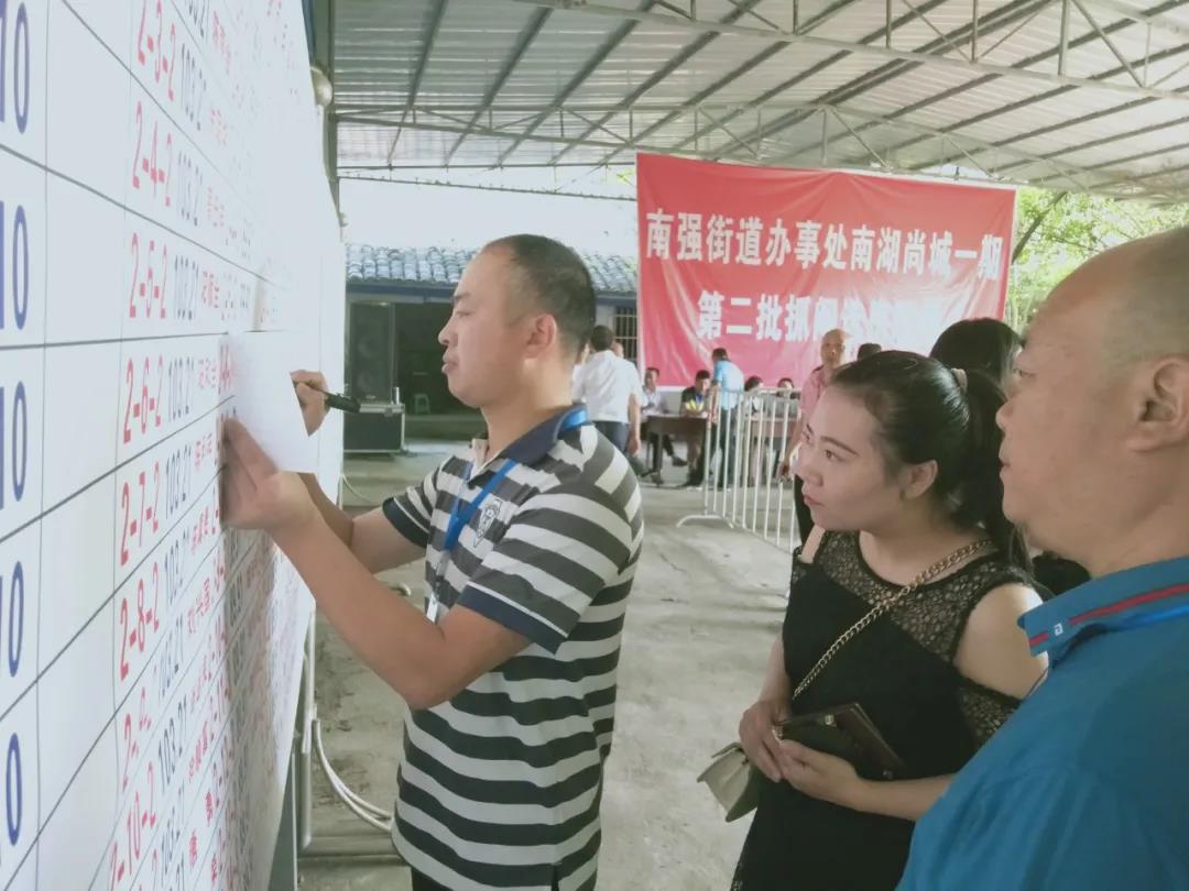 "终于分到了新房,这下不用租房子了,说不出来的开心,这次分房,从登记、房源分配、抓阄、公示,全程都是公开的,大家都看得到。" 大石桥社区三组居民阳发庆掩饰不住满脸笑容。 夏日炎炎,南强街道的拆迁户们的心情像天气一样"火热"。6月5日上午,南湖尚城一期安置小区第二批次抓阄选房在南强街道办事处如期举行,200余居民早早就来到选房现场,等待抓阄选房这激动人心的时刻的到来。 安置户经过现场资格确认后,在工作人员的引领下依次通过资格复审、现场喊号、抓阄选房、现场登记、抓阄结果公示等程序,高高兴兴的抓阄选房。现场共有87户符合条件的安置居民分配房源87套,面积从70平方米至120平方米不等。 南强街道纪工委全面对此次选房过程进行了全程监督,确保选房工作始终遵循公开、公平、公正的原则。 "我们对此次选房工作高度重视,对选房工作进行了周密安排,提出了明确要求,切实将前期工作做细、做实、做到位,坚持依法依规,公平公开,将好事办好,要让群众真正感受到党和政府是用心用情在为民众办实事、谋福利。"南强街道党工委书记、抓阄选房总指挥段炼介绍。 据悉,符合此次抓阄分房的对象为南强街道办事处马宗岭、大石桥、金鱼、桐子垭等四个社区2017年5月1日前原协议安置到金涪二期、机场E区,目前尚未安置一套现房的居民(以"一处"拆迁房屋为单位),每户居民最多可申请安置一套。