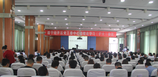 遂宁新闻网讯(全媒体记者 米琴)6月7日,经开区召开2018年度第五期区党工委中心组(扩大)学习会。会议主要是认真贯彻落实省委、市委关于“大学习大讨论大调研”活动的总体安排部署,通过学习提高服务发展的能力和水平。会上,中山大学公共传播研究所研究员、MBA教授林景新为大家讲解了舆情危机防范与应对。