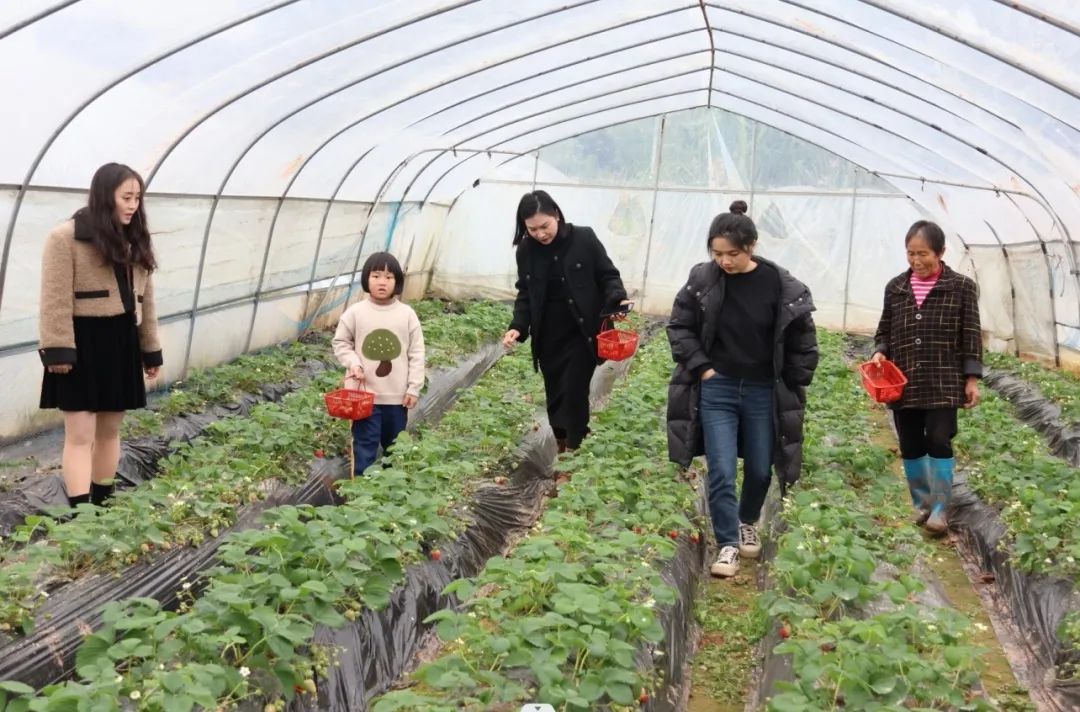 阳光明媚的冬日,遂宁经开区新桥镇长五村的草莓基地游客熙熙攘攘,大家手提篮子穿梭在草莓地里,一颗颗饱满鲜亮、色泽娇艳的草莓散发出香甜气息,让人忍不住想要摘下品尝。