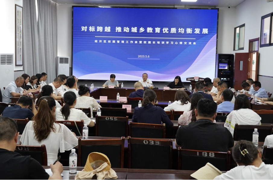 为落实基础教育扩优提质要求,对标跨越,推动城乡教育优质均衡发展,5月5日-6日,遂宁经开区召开校园管理工作会暨校园长培训学习心得交流会。区党工委委员、管委会副主任邓永进,社事局局长周辉燕,区内中小学幼儿园校(园)长、副校(园)长参加。