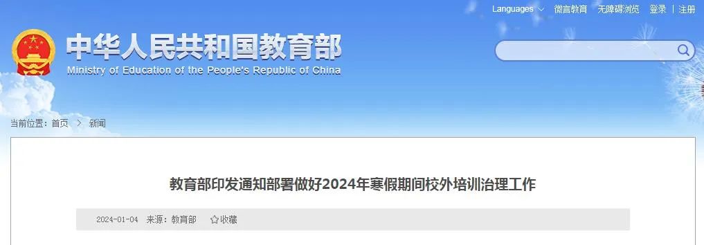 寒假将至,为深入贯彻落实党中央、国务院决策部署,进一步巩固校外培训治理成效,严防学科类培训隐形变异,强化非学科类培训监管,帮助广大中小学生度过一个平安祥和、丰富充实、轻松愉快的假期。近日,教育部印发通知,部署各地教育行政部门认真做好寒假期间校外培训治理工作。