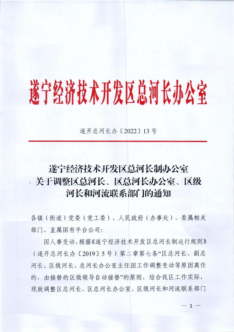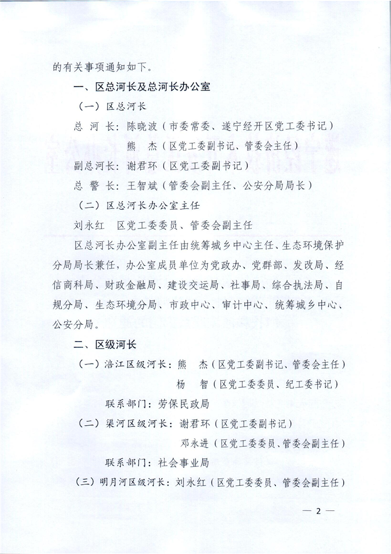 关于调整区总河长、区总河长办公室、区级河长和河流联系部门的通知