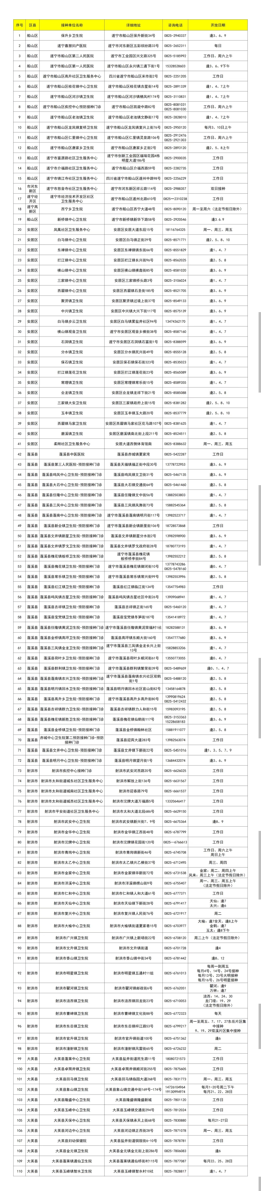 遂宁市各类疫苗接种点开放汇总