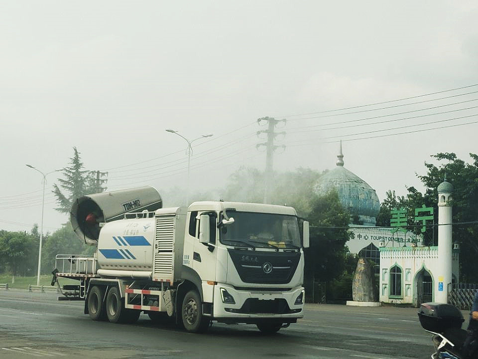 ▲抑尘雾炮车在重点区域持续开展喷雾作业