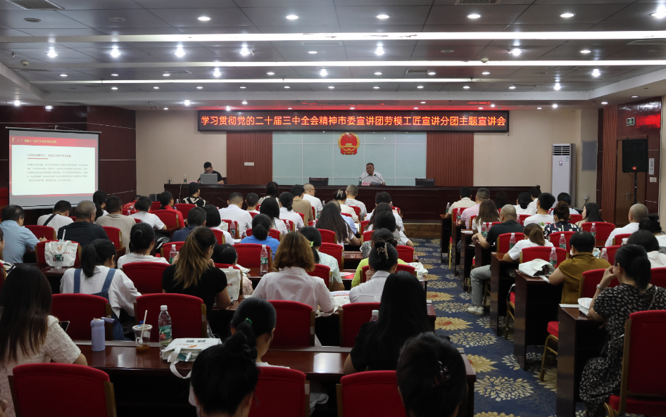9月6日,学习贯彻党的二十届三中全会精神市委宣讲团劳模工匠宣讲分团主题宣讲会在遂宁经开区举行。市委宣讲团劳模工匠宣讲分团团长、市总工会党组书记、副主席夏建军向现场100余名企业职工代表、新就业形态劳动者生动宣讲了党的二十届三中全会精神。