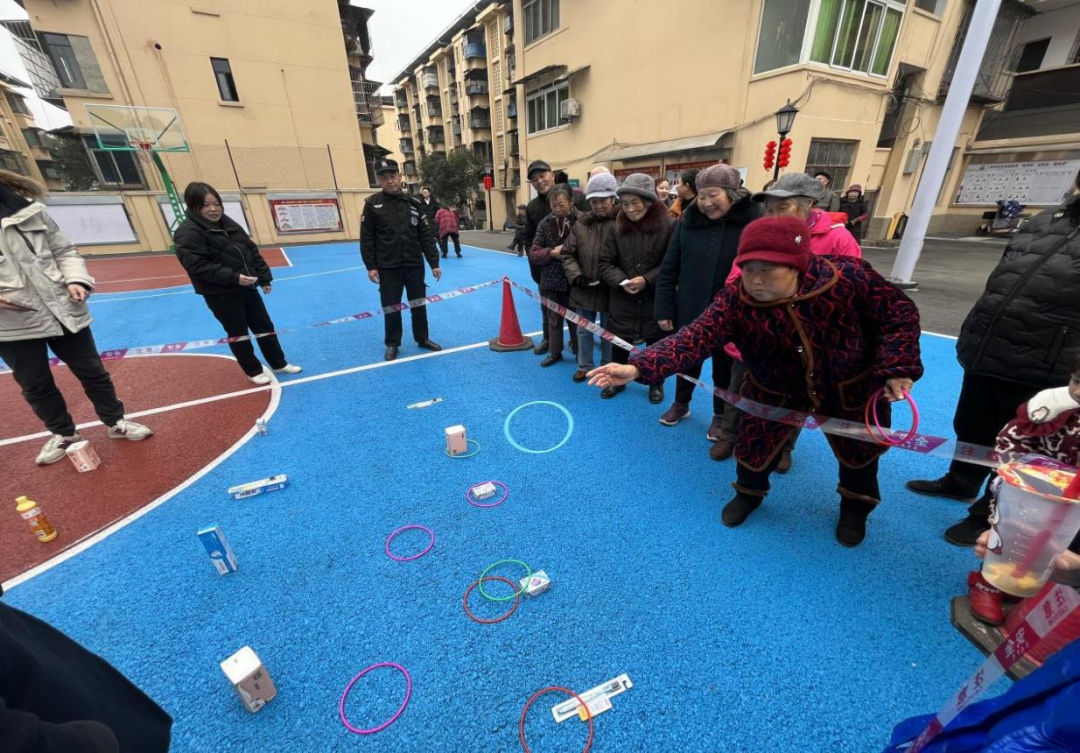 二井沟社区的小区院落灯笼、彩灯高挂,活动现场更是处处透着喜庆。本次“同庆团圆年·邻里一家亲”新春主题活动设置了趣味套圈、乐夹弹珠等游戏区域,让不同年龄段的居民都能乐在其中。