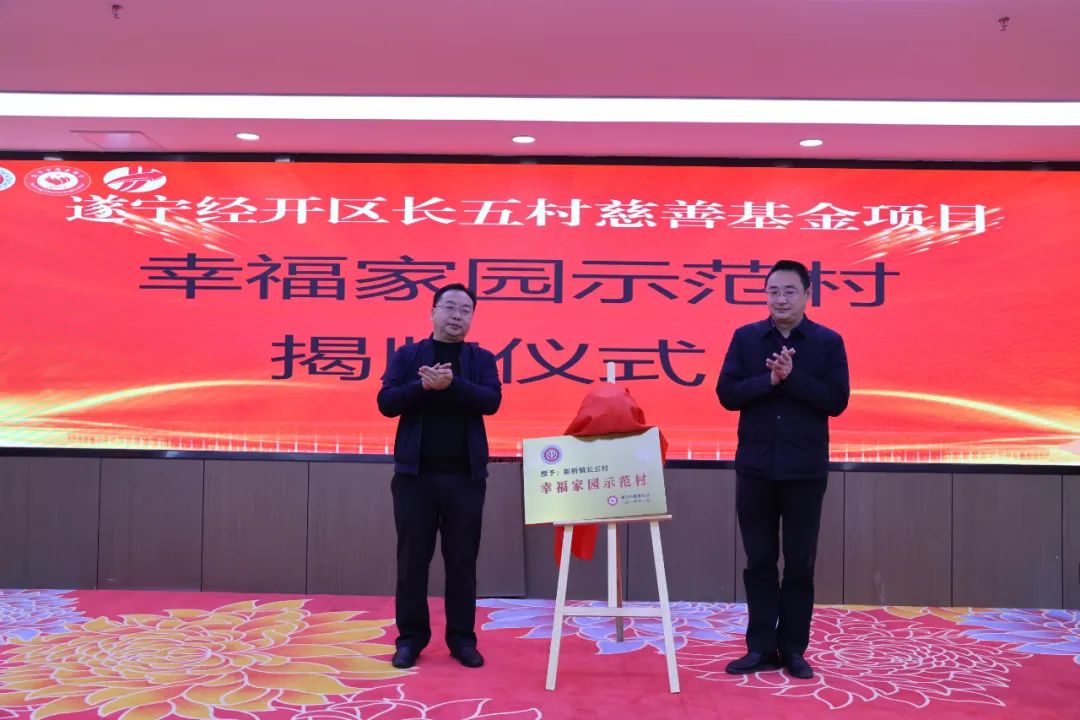 1月12日,遂宁经开区举行“幸福家园”村社互助工程项目——“幸福家园 凤舞长五”长五薯来宝启动仪式。市民政局党组成员、副局长田贵凡和遂宁经开区党工委委员、管委会副主任刘永红共同为长五村“幸福家园示范村”揭牌。