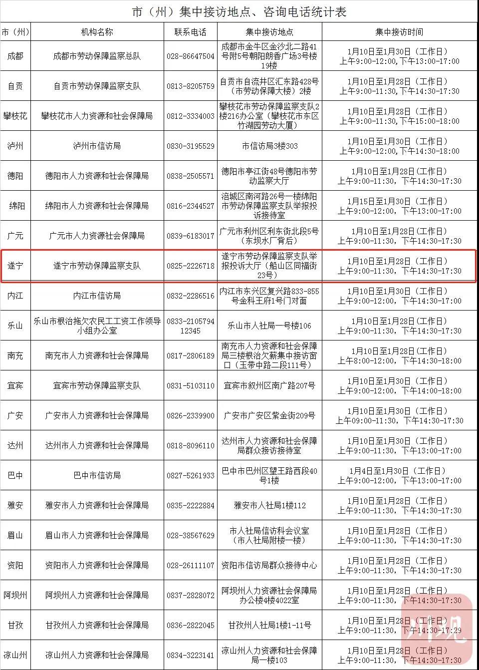 1月10日,四川省开展拖欠农民工工资举报投诉集中接访活动。省根治拖欠农民工工资工作领导小组办公室组织人力资源和社会保障厅、住房和城乡建设厅等10家成员单位有关负责人集中接访,各市(州)也同步开展集中接访活动。