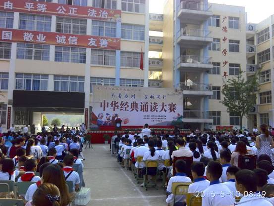 据介绍,广德中学建校以来,秉承“有教无类,教学相长”的教学理念,践行“广德广才,求真求精”的校训,学校“立德树人,崇德向善”,教师“明德惟馨,敬德修业”,学生“遵德尚学,养德正身”。全校师生同心同德,凝心聚力,拼搏奋进,取得了可喜的成绩。学校先后被评为遂宁市文明单位、遂宁市义务教育示范学校、遂宁市德育工作先进集体、遂宁市廉政文化进学校示范点、遂宁市红领巾示范学校、遂宁市全民阅读示范基地,全国创新作文教育实验基地,先后获得中国教育报刊社小作家作文比赛一等奖,四川省“三爱”教育征文比赛优秀集体,四川省城市(乡村)学校少年宫电视展播节目三等奖,四川省五四红旗团支部等国家、省、市、区各级荣誉40余项。 (王春梅 田庆康)