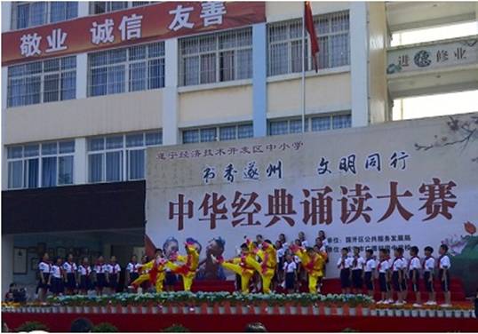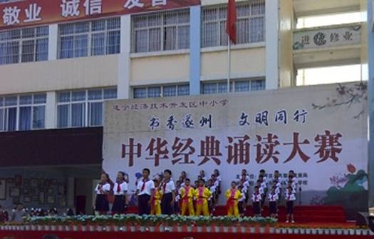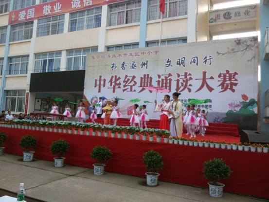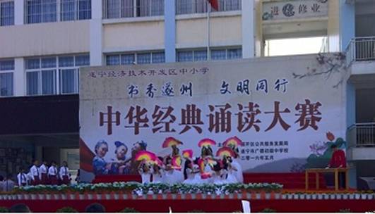 刘川讲到,开发区教育系统中华经典诵读大赛在广德中学隆重举行,是广德中学全体师生的荣幸。传统文化开启智慧,经典诵读浸润心灵。五千年的悠久历史孕育了底蕴深厚的华夏文明,源远流长的古典诗文造就了经久不衰的民族瑰宝。一篇篇经典美文,一句句精粹哲理,不仅能让大家享受阅读的快乐,更能让大家悟出做人的道理,从而提高人格品位,提升精神境界,追求美好人生。并提出倡议:以此活动为契机,让阅读成为习惯,使书香飘溢校园,掀起“爱读书,好读书,读好书”的热潮,读千古美文,扬传统文化,与经典相伴,与圣贤同行。