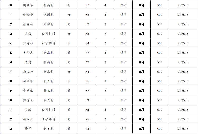 2025年8月遂宁经开区乡村公益性岗位补贴资金发放公示