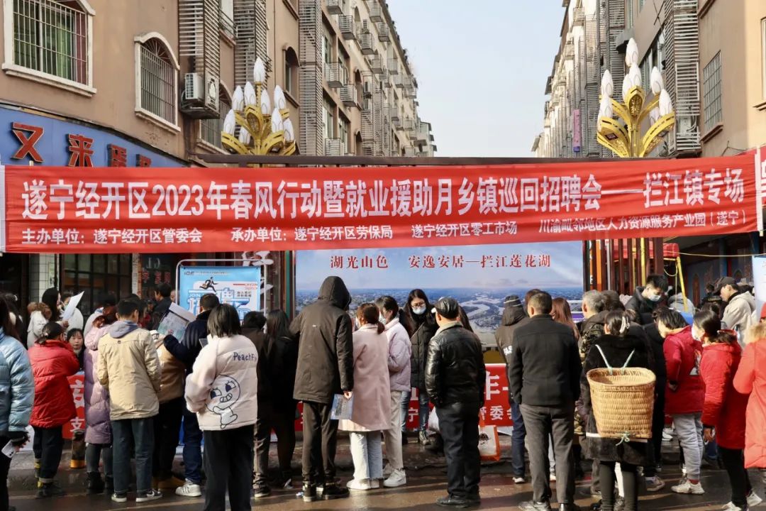 “前两天镇上来登记的想找工作的人就有80多个,他们都想今年能就近就业,留在家乡!”1月28日上午9点,春节收假后的第一天,遂宁经开区2023年春风行动暨就业援助月乡镇巡回招聘会首站走进安居区拦江镇。东平社区副主任刘芳刚举起手上的求职登记簿招呼求职者依次排队,现场就排起了“长龙”,拦江镇的步行街一时间被挤得水泄不通。